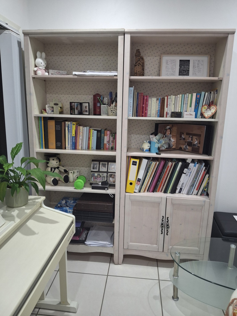 두개 책장 $150. 친환경 제품입니다. 롯데백화점에서 판매하는 스칸디아 제품이구요. 약간 핑크빛이 도는 제품입니다. 친환경 무늬목입니다. 두개가 세트구요.