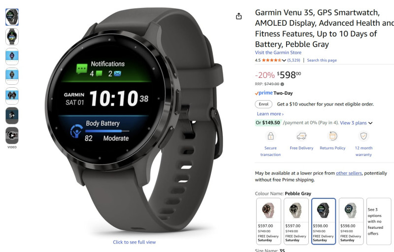 Garmin Venu 3S, GPS Smartwatch, AMOLED Display, Advanced Health and Fitness Features, Up to 10 Days of Battery, Pebble Gray Garmin Venu 3S 팝니다. 픽업은 맥그레이서 입니다. 연락 주세요.