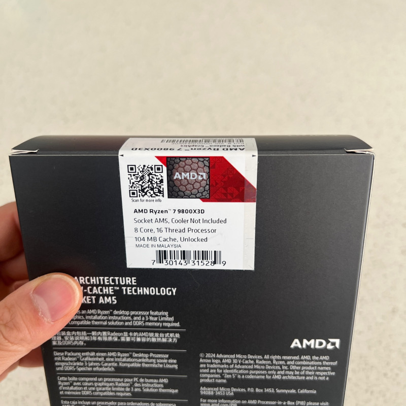 작년에 한국 방문했을 때 구매한 9800x3d 정품입니다.