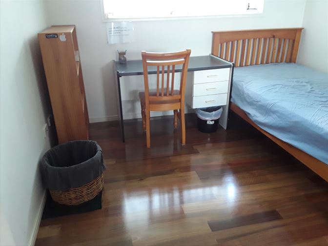 4. 家具齊全: A New Quality King Single bed, 3 drawer chest, book shelf and built in wardrobe.