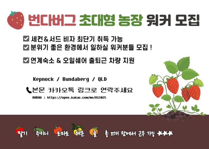 ❤️[세컨비자/서드비자 가능] 번다버그 초대형 농장 워커 모집 ❤️