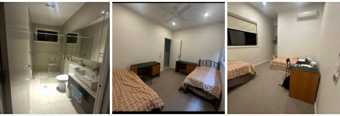 연락처 : 0405 455 771 (문자 주세요.)안에는 싱글 침대 2개, 책상 2개, 실링팬, 옷 넣을 공간이 구비 되어 있습니다. 침대나 책상은 자유롭게 옮겨서 사용 가능하세요.