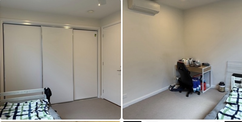 방은 마스터룸 만큼 크고 깨끗하며 싱글침대, 책상, 붙박이장, 실링팬과 에어컨이 구비 되어 있습니다.
