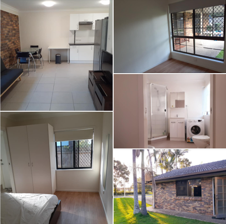 방이 두개(침실, 스터디룸), 거실, 주방, 욕실 다 갖추고 있고 가구들도 모두 구비되어 있습니다. 바닥도 거실은 타일, 방은 팀버로 최근에 새로 깔았습니다. 위치는 캐린데일 쇼핑센터에서 도보로 10분 정도, 그리고 집 바로 앞에 시티, 사우스뱅크까지 바로 가는 버스 200, 201 운행됩니다.