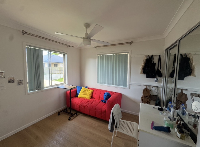 큰방에는 에어컨과 큰침대 작은방은 책상 넣어드리고 1인침대도 원하시면 구비해드립니다. 화장실은 샤워실과 변기만있는 화장실 네명이서 사용합니다.