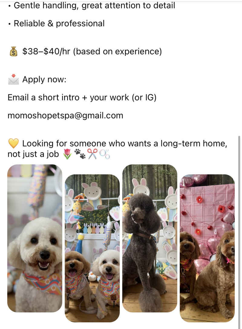 [기타] 브리즈번 애견미용사(그루머) 구합니다.