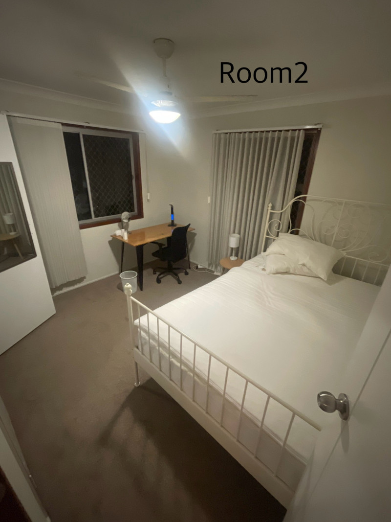 Room 2: 3.5x3.0m room, carpet floor, provide key for room, full furnished (wardrobe, queen bed, chair and desk)