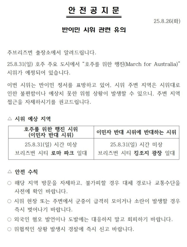 (브리즈번출장소 안전 공지- 재강조) 주호주대한민국대사관 사칭 피싱범죄 주의
