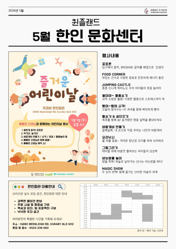5월 퀸즐랜드 한인 문화센터 - 어린이날