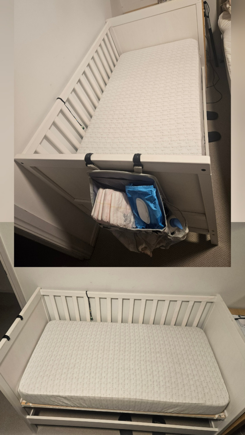 아기침대 300불. (프레임. 매트리스. 매트리스 커버x2. 프레임거치 기저귀가방 포함해서 드려요)