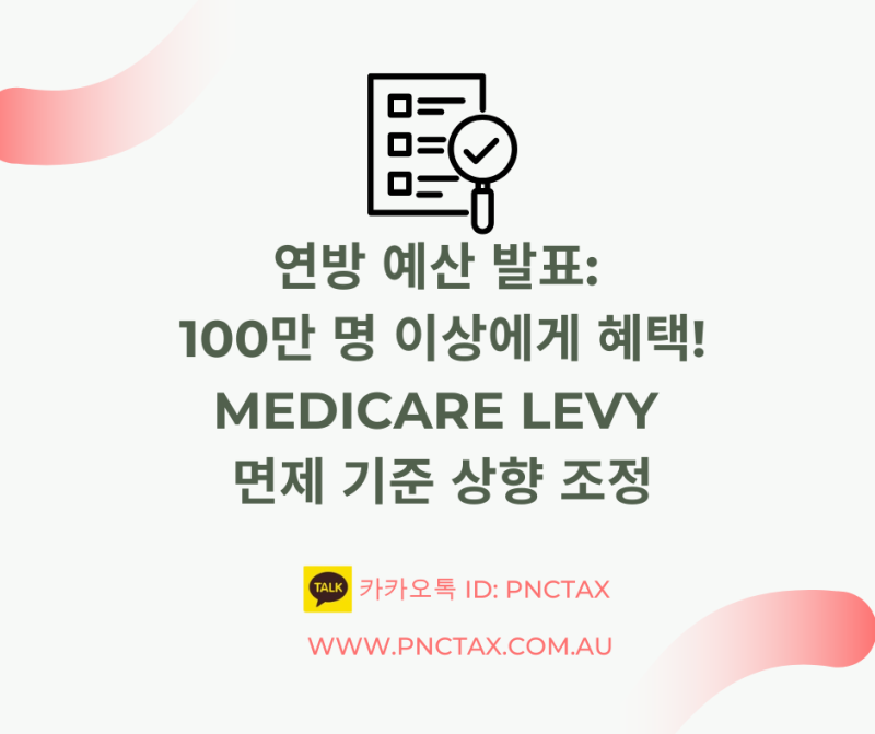 ▶▶▶호주세금환급:: 연방 예산 발표: 100만 명 이상에게 혜택! Medicare Levy 면제 기준 상향 조정◀◀◀