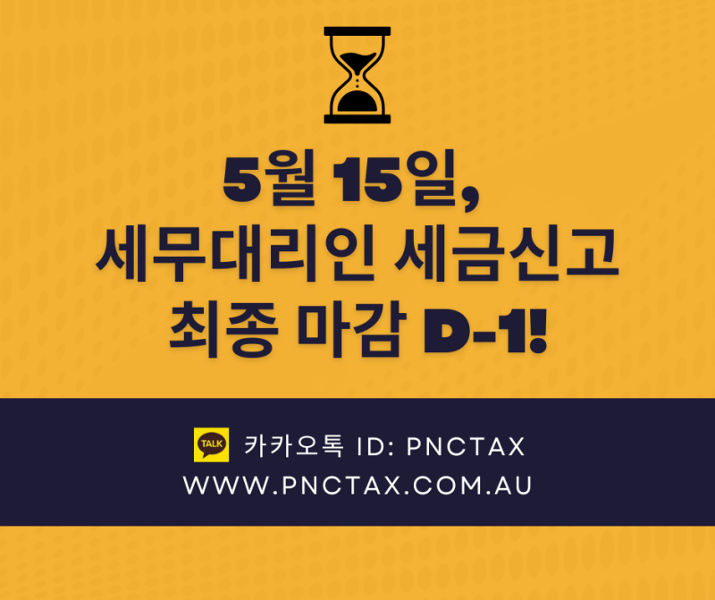 호주에서 세무대리인을 통해 세금신고를 진행하는 납세자에게 2025년 5월 15일(목) 은 매우 중요한 날짜입니다. 신고 기한을 지키지 못할 경우, 연체 가산세가 부과될 수 있으니, 지금 서류를 정리하시고 세무대리인과 최종 점검을 진행하는 것이 중요합니다. 이번 포스트에서는 5월 15일 마감일에 대한 주요 사항과 기한을 놓쳤을 경우의 대처 방법을 안내해드립니다. 자세한 내용은 하단의 저희 블로그 포스트 링크를 통해서 확인해주시기 바랍니다.