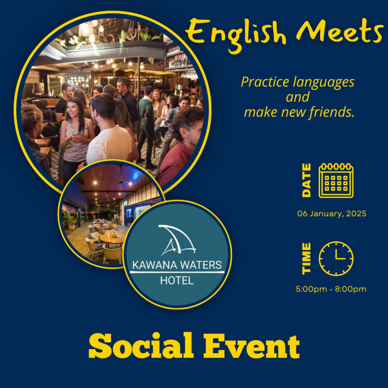This coming Monday, we will be hosting a special English Meets event at Kawana Waters Hotel.