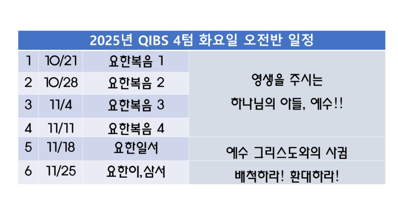 2025년 퀸즐랜드 귀납적 성경 연구학교(QIBS) 4텀 학생 모집