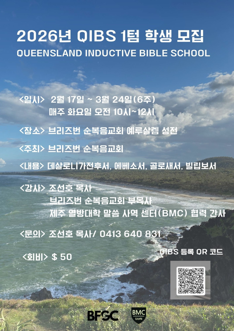 2026년 퀸즐랜드 귀납적 성경 연구학교(QIBS) 1텀 학생 모집
