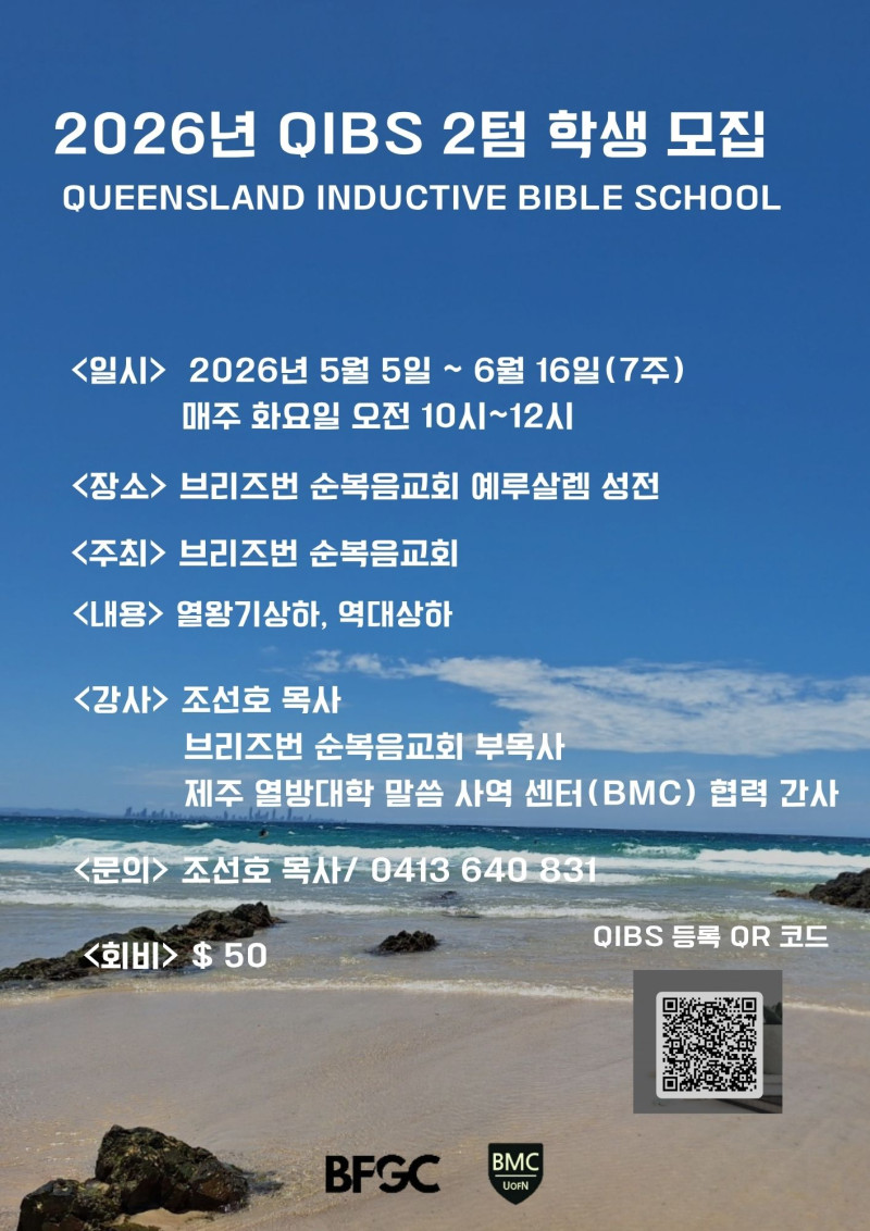 2026년 퀸즐랜드 귀납적 성경 연구학교(QIBS) 2텀 학생 모집