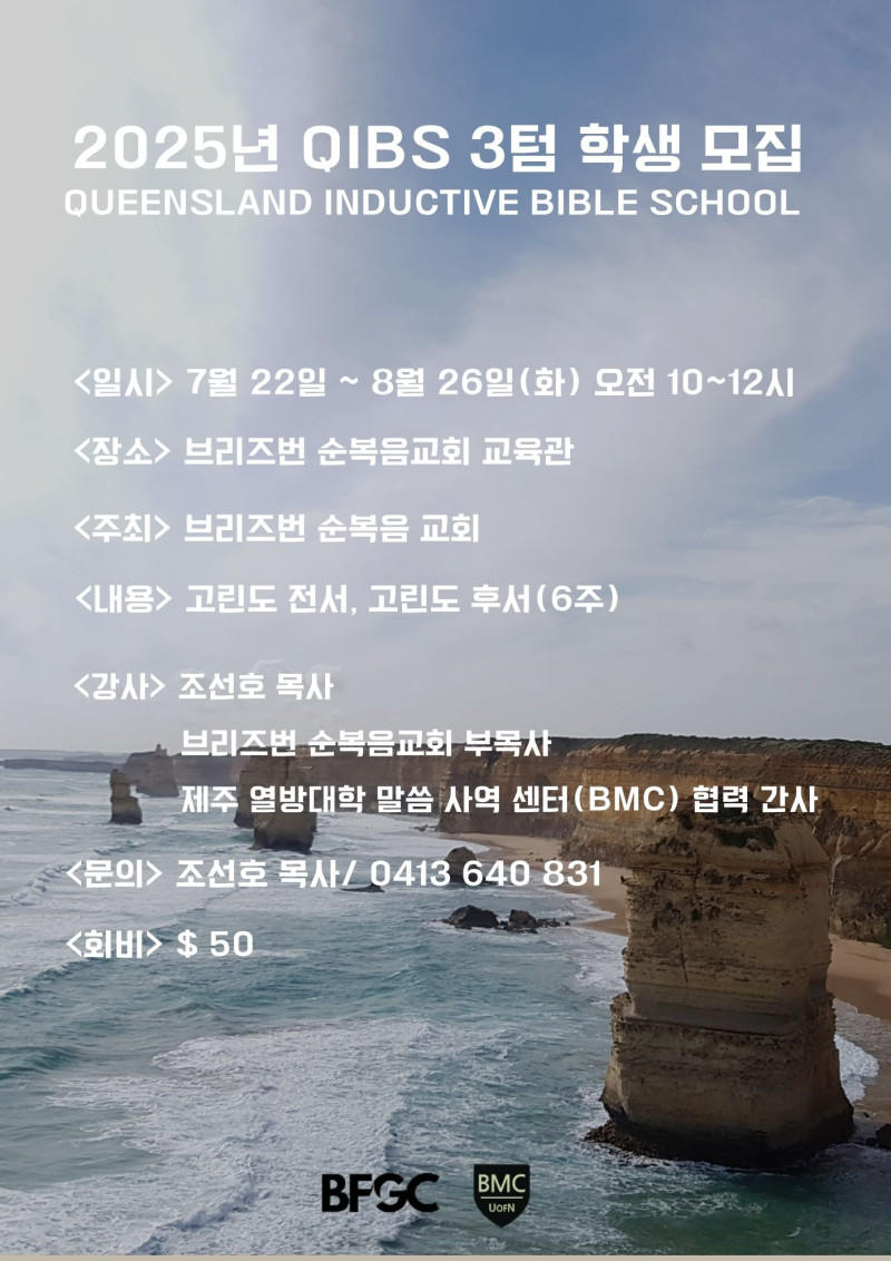 2025년 퀸즐랜드 귀납적 성경연구 학교(QIBS) 3텀 학생 모집