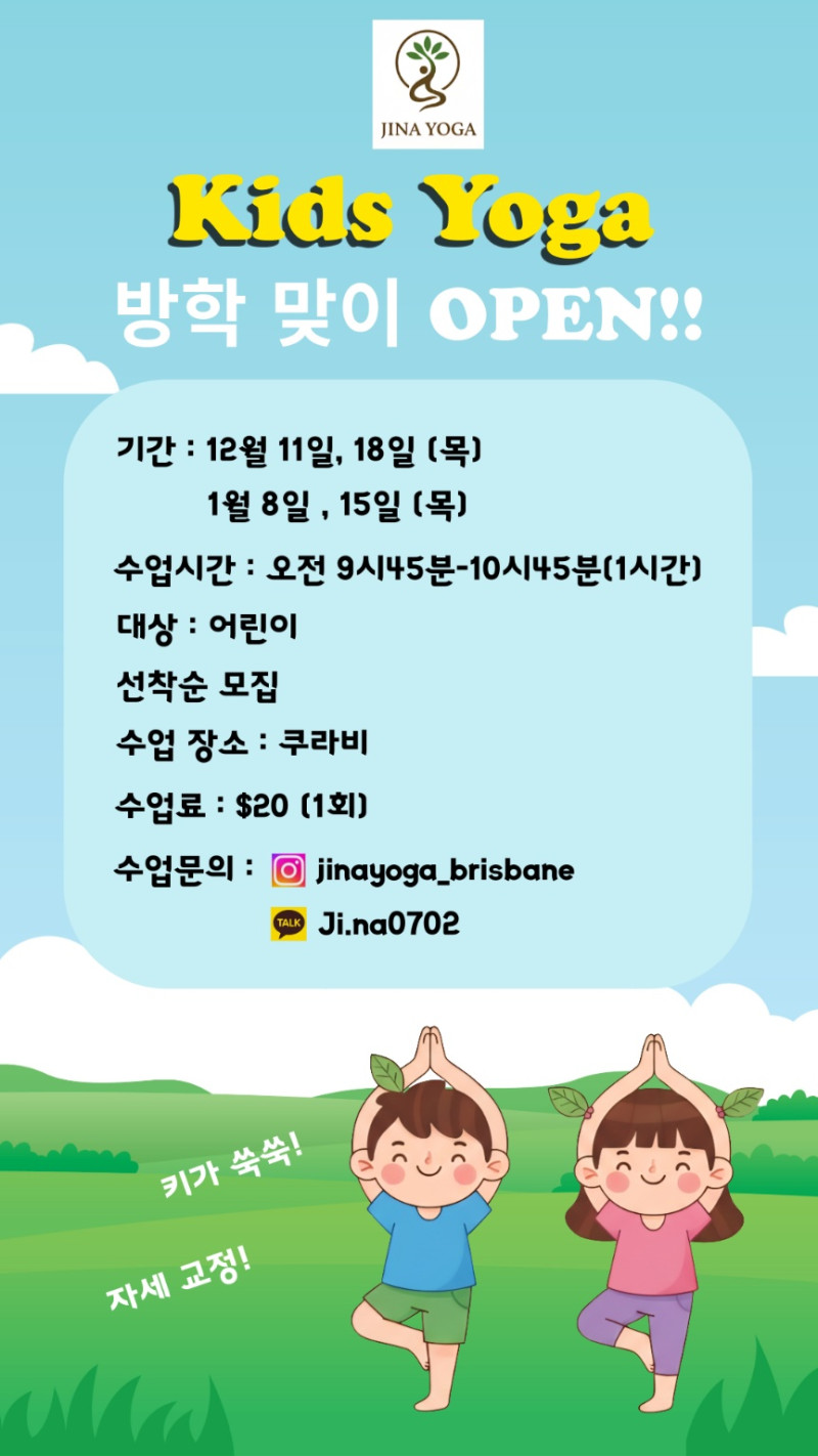 [스포츠] 안녕하세요! JINAYOGA에서 방학 맞이 키즈요가 오픈했습니다. !!
