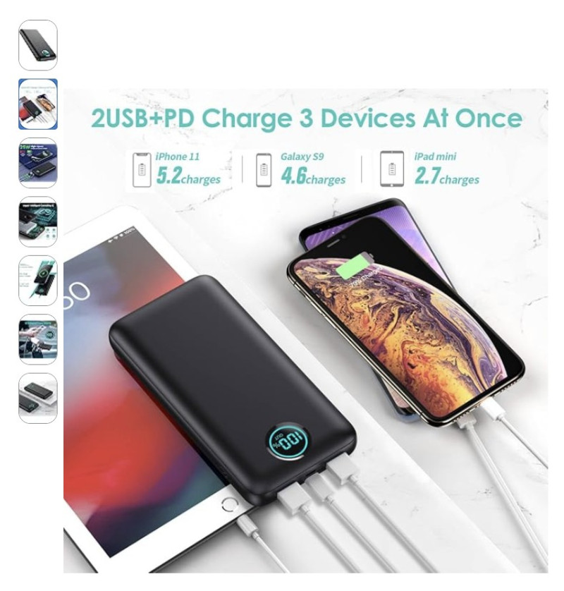 【25W PD 초고속 충전 휴대용 충전기】느린 충전 속도와 배터리 부족 걱정에 지치셨나요? Pxwaxpy 25W 고속 충전 보조 배터리를 사용하면 더 이상 끝없는 충전 대기 시간이나 배터리 부족 걱정에서 벗어날 수 있습니다. 이 보조 배터리로 휴대폰/태블릿을 빠르게 충전하여 중요한 전화나 영상 통화를 놓치지 않고 언제든 사랑하는 사람이나 친구들과 연락을 유지할 수 있습니다.