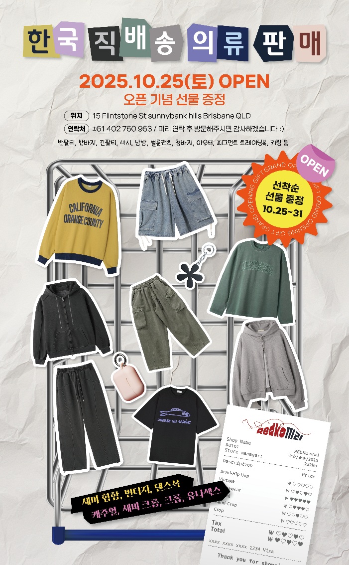 한국에서 가져온 퀄러티 좋고 힙한 옷들 직접 보고 구매하실 수 있어요.