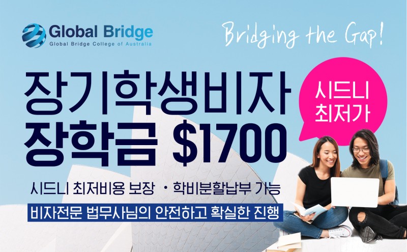 글로벌 브릿지에서 현재 학생비자를 진행하는 학생들에게 한학기 Term 학비 $750 부터! 학비 프로모션을 진행합니다.
