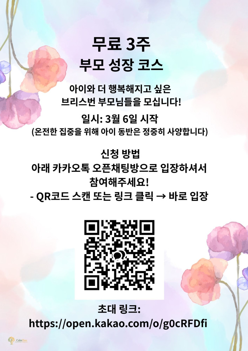 무료 자녀 양육 코스가 있습니다. 관심있는분 보세요.
