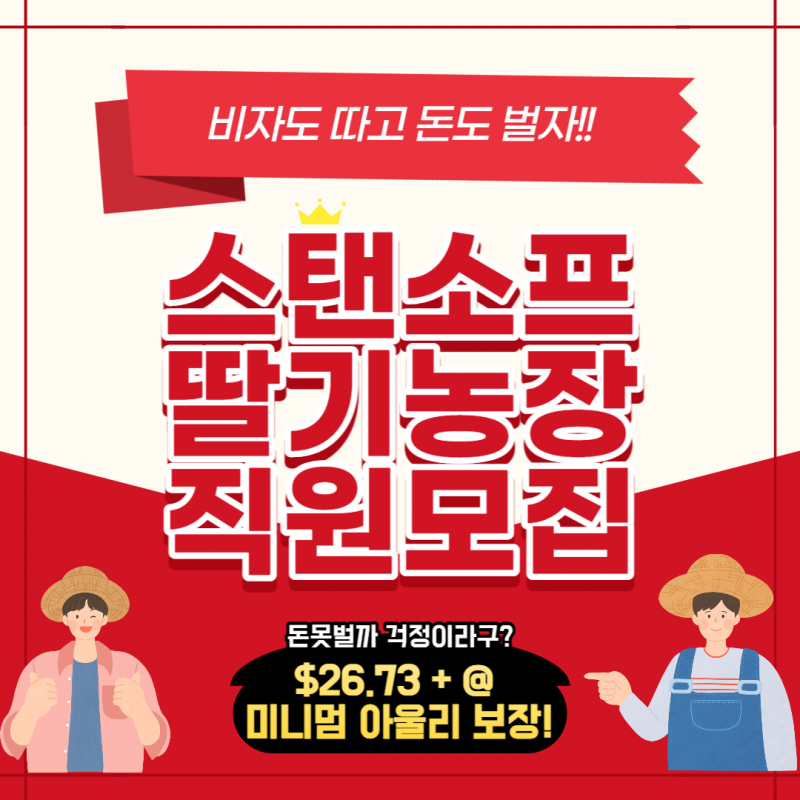 [스탠소프] 단가 좋고 숙소 좋고 비자따고 돈 많이 많이 벌어가실분 연락주세요!! (딸기농장)