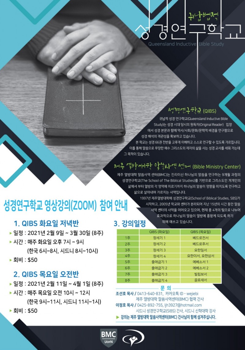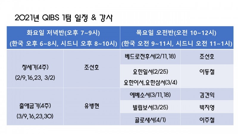 2021년 1텀 귀납적 성경연구학교(QIBS) 영상 강의 안내