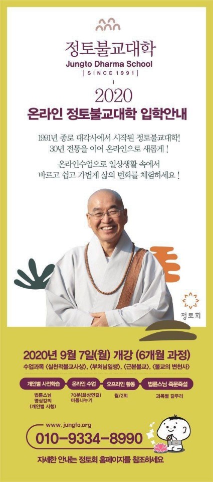 나만의 공간에서 편안하게 만날 수 있는 법륜스님의 온라인 정토불교대학 입학신청이 시작되었습니다 ^^