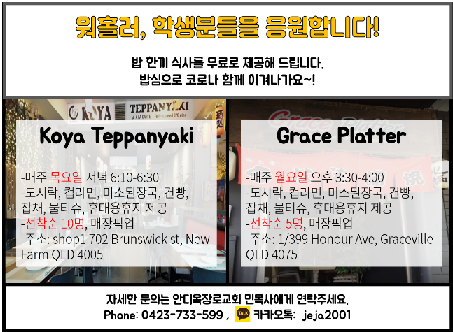 워홀 청년, 유학생 무료 지원(도시락, 컵라면, 미소된장국, 엄마잡채, 건빵 등등)