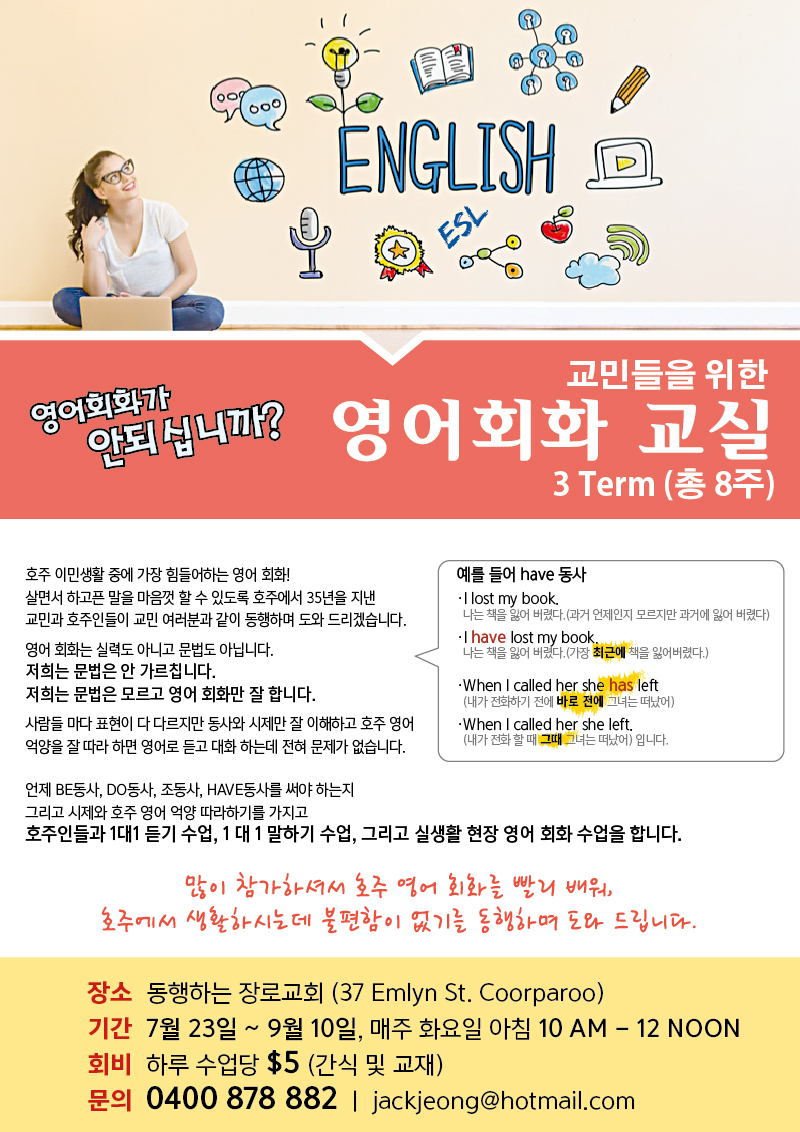 많이 참가하셔서 호주 영어 회화를 빨리 배워, 호주에서 생활하시는데 불편함이 없으시길 바랍니다.