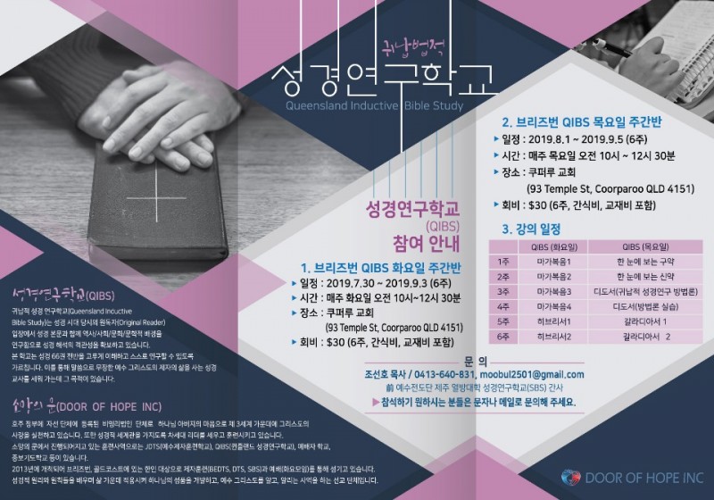 퀸즐랜드 귀납적 성경 연구학교(QIBS)입니다~~