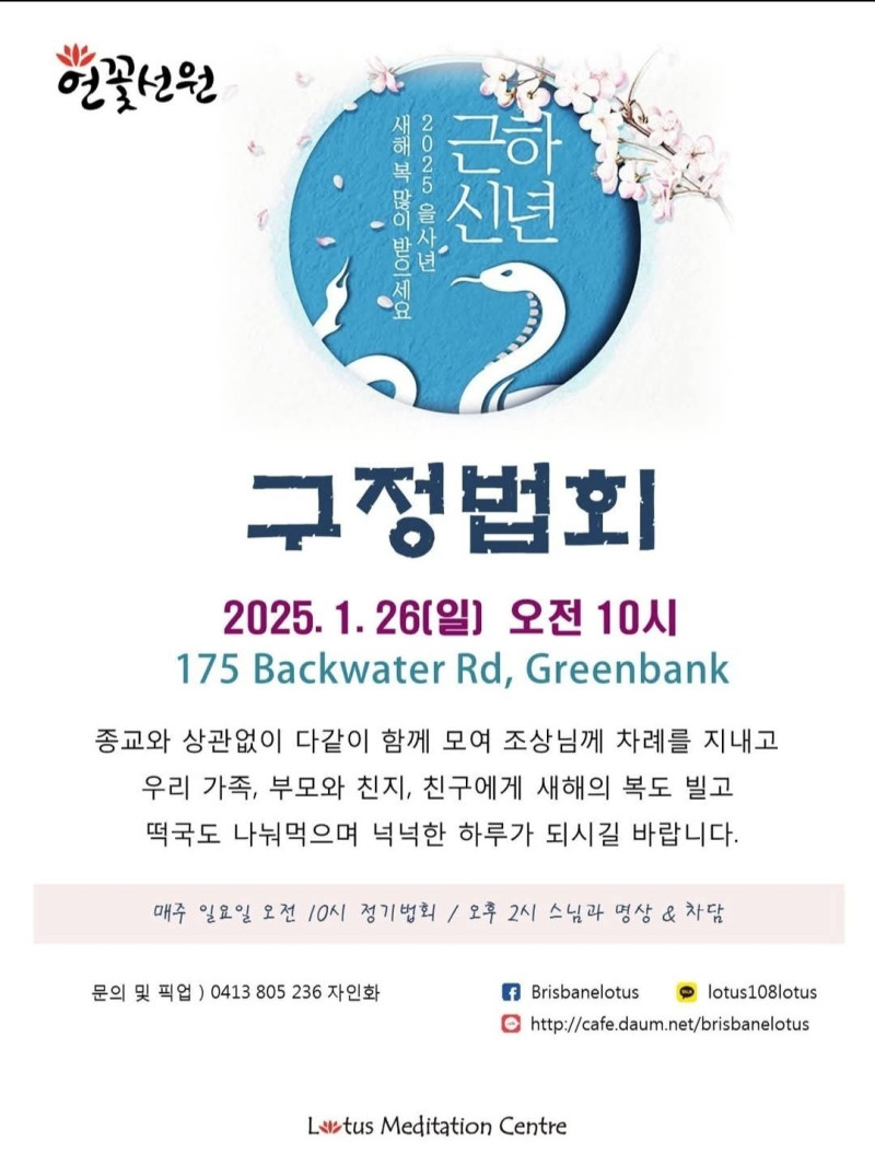 연꽃선원 ㅡ구정 설날 2025.02 .26 일요일 10시.