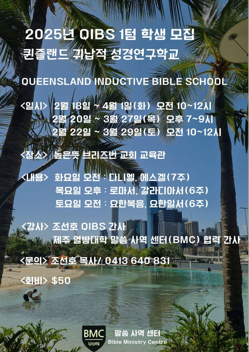2월부터 시작되는 퀸즐랜드 귀납적 성경 연구학교 안내드립니다~~