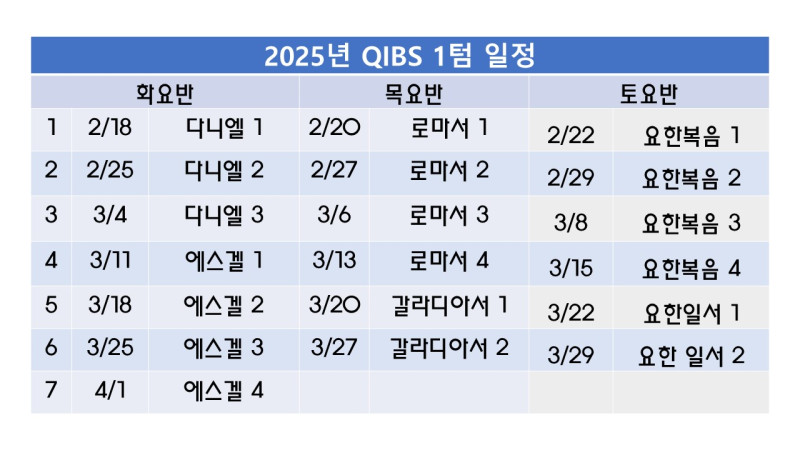 2025년 귀납적 성경 연구학교(QIBS) 1텀 강의 안내