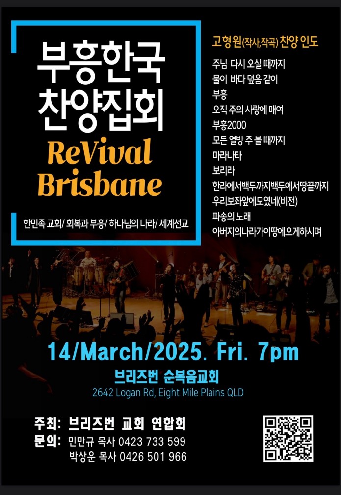 고형원 선교사님이 인도하는 <부흥한국> 찬양팀이 브리즈번에 오십니다.