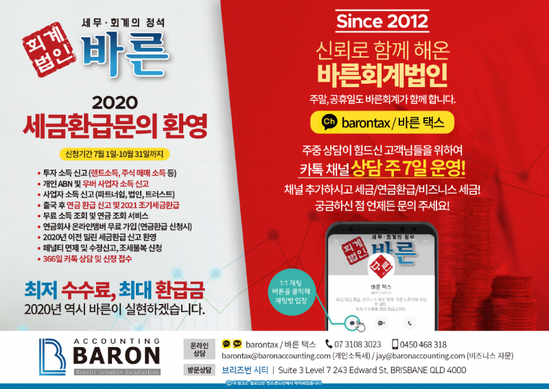 2020세금환급 최저수수료(카톡.barontax) 지금 문의하세요!