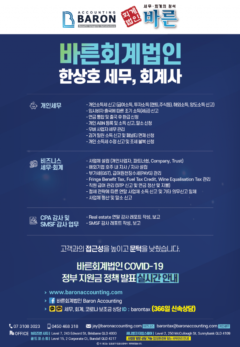 비교 기간 중간에 사업을 오픈하신 분들, GST 가 등록되어 있지 않지만 신청이 가능하신 교민분들 분명히 계십니다.