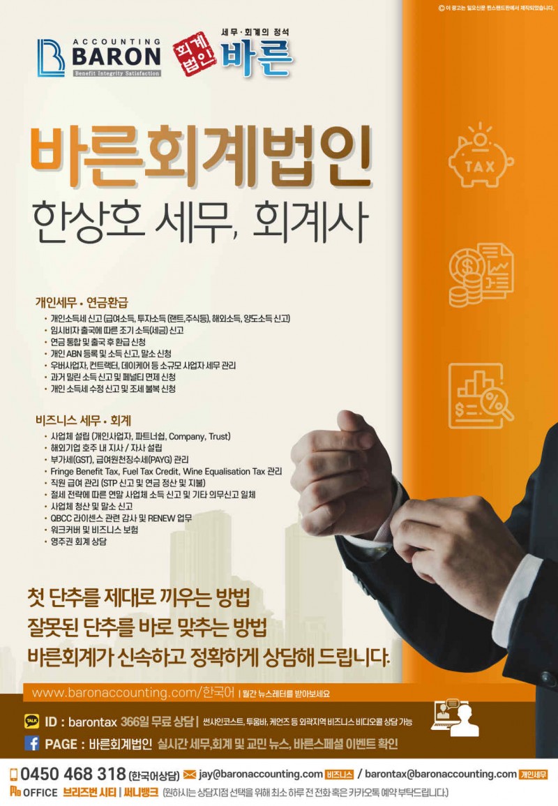 바른회계법인-비즈니스설립/절세자문,개인세금/연금 - 브리즈번/써니뱅크
