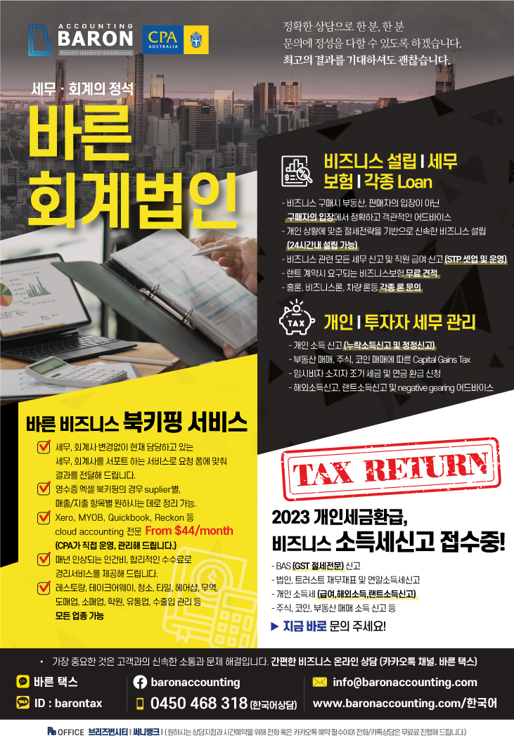 바른회계법인은 2012년부터 호주 전역의 교민 여러분과 함께 성장해 온 믿을 수 있는 세무, 회계 법인 입니다.