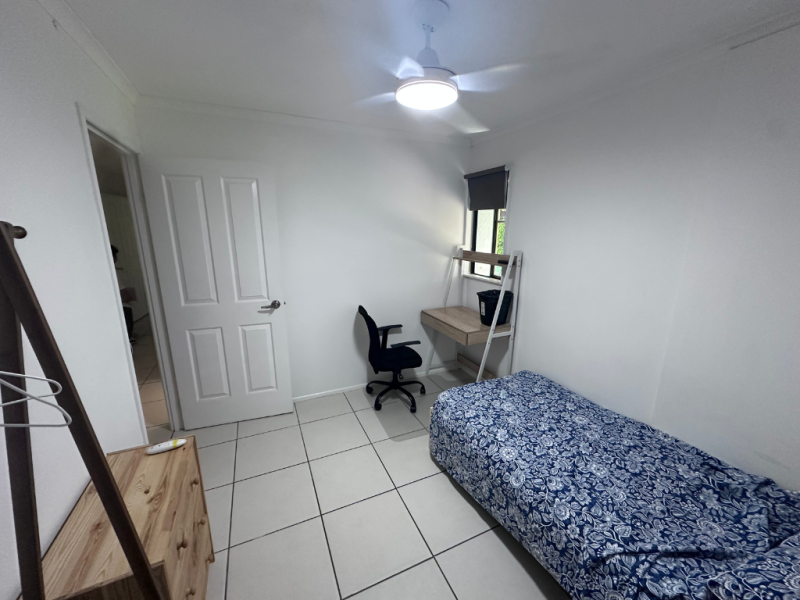 쉐어생 방에는 실링팬+옷을 걸수있는 행거+책상+의자+싱글침대가 준비되어있습니다. (바로 입주가능)