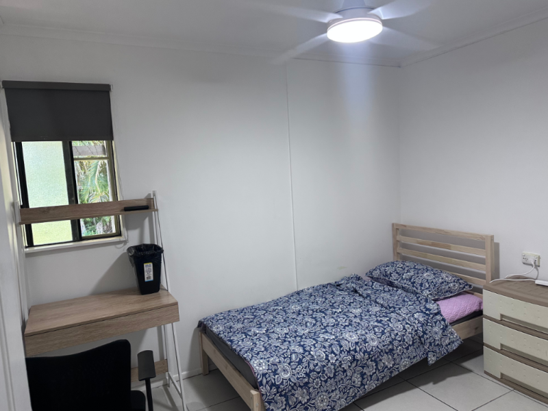 쉐어생 방에는 실링팬+옷을 걸수있는 행거+책상+의자+싱글침대가 준비되어있습니다. (바로 입주가능)
