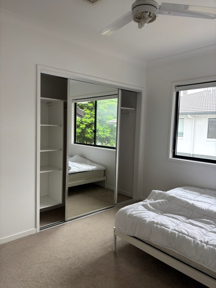 [마스터룸] :퀸 사이즈 침대, 빌트인 옷장, 수납함, 실링팬, 에어컨