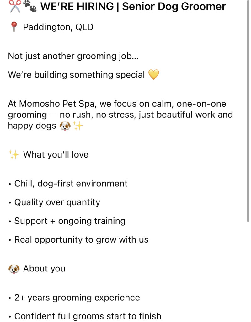 [구인] 브리즈번 애견미용사(그루머) 구합니다.