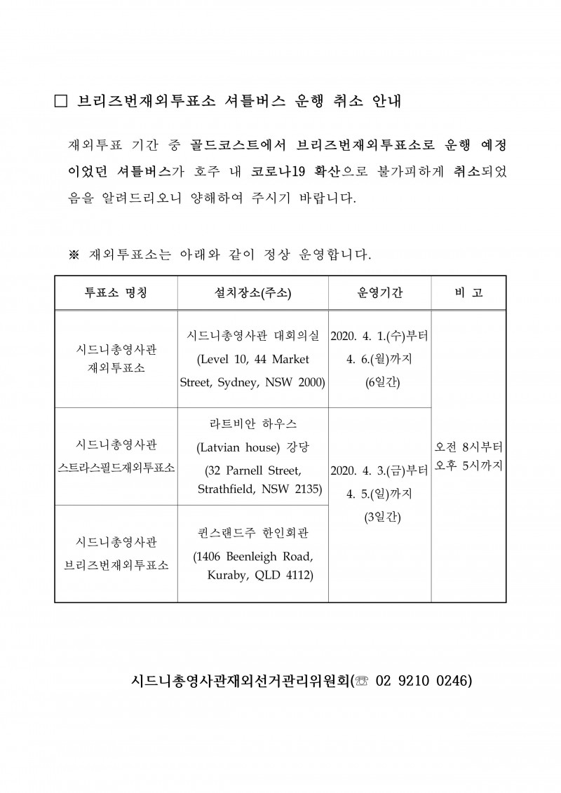 재외선거 셔틀버스 운행 취소관련 안내 - 시드니총영사관 재외선거 Sun Admin 2020.03.23 07:23 2,212 0 LV.5 57% - 첨부파일 : 2s2a.jpg (418.7K) - 다운로드 22 2020-03-23 07:23:18 - 짧은주소 : http://www.sungoldco.com/brsb/bbs/?t=2fOi 주소복사 × 짧은 글주소 복사 복사하기 Note! '복사하기' 버튼을 클릭하면 내 컴퓨터 클립보드에 복사됩니다. 목록 본문 SUNBRISBANE @SUNBRISBANE_SUNQLD 댓글목록 0 등록된 댓글이 없습니다. 목록