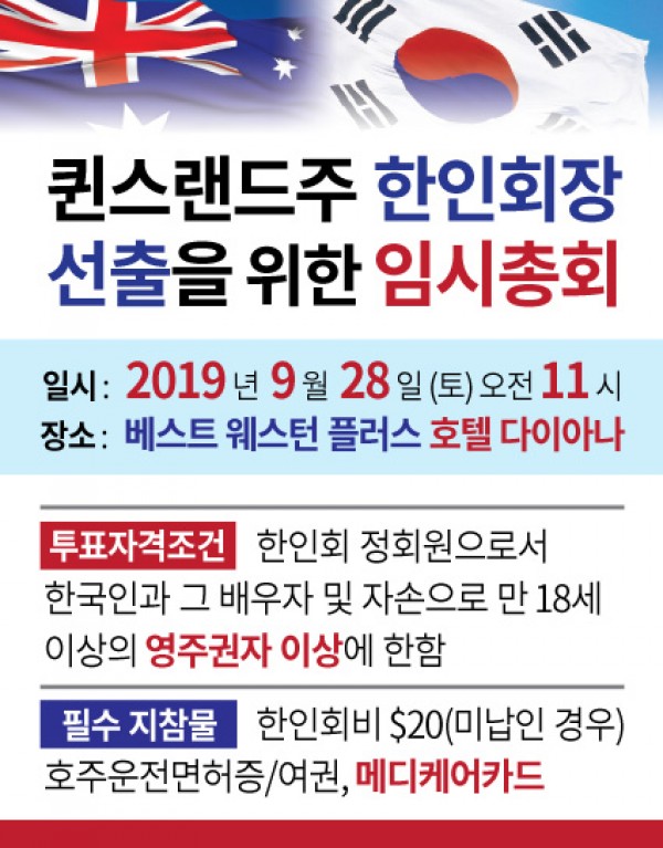 주시드니총영사관(총영사 윤상수)은 아래와 같이 퀸즐랜드주 브리즈번에서 순회영사를 개최할 예정입니다.o 브리즈번- 일시 : 2019. 1.11.(금) 09:00~12:00, 13:00~16:00 (*12:00~13:00는 점심시간.)- 장소 : 퀸즐랜드 한인회관(브리스번…