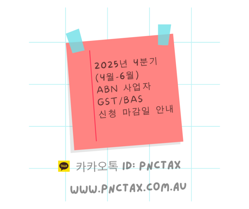 호주 비즈니스 (ABN):: 2025년 4분기 (4월-6월) ABN 사업자 GST/BAS 신청 마감일 안내