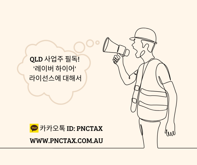 퀸즐랜드에서 비즈니스를 운영하다 보면 인력이 부족해 외부 인력을 공급받거나, 반대로 우리 직원을 다른 업체에 보내 일을 도와주는 경우가 생기곤 하죠. 이때 반드시 체크해야 할 것이 바로 '레이버 하이어 라이선스 (Labour Hire Licence)'입니다. 단순한 행정 절차라고 생각하기 쉽지만, 위반 시 세무적 리스크는 물론 막대한 벌금이 부과될 수 있어 주의가 필요합니다. 오늘은 세무사 관점에서 꼭 알아두어야 할 핵심 내용을 정리해 드립니다. 자세한 내용은 하단의 저희 블로그 포스트 링크를 통해서 확인해주시기 바랍니다.