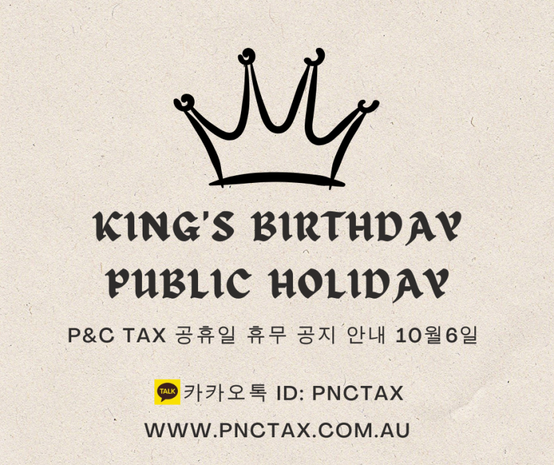 P&C Tax 공휴일 휴무 공지 안내 10월6일 (King's Birthday)