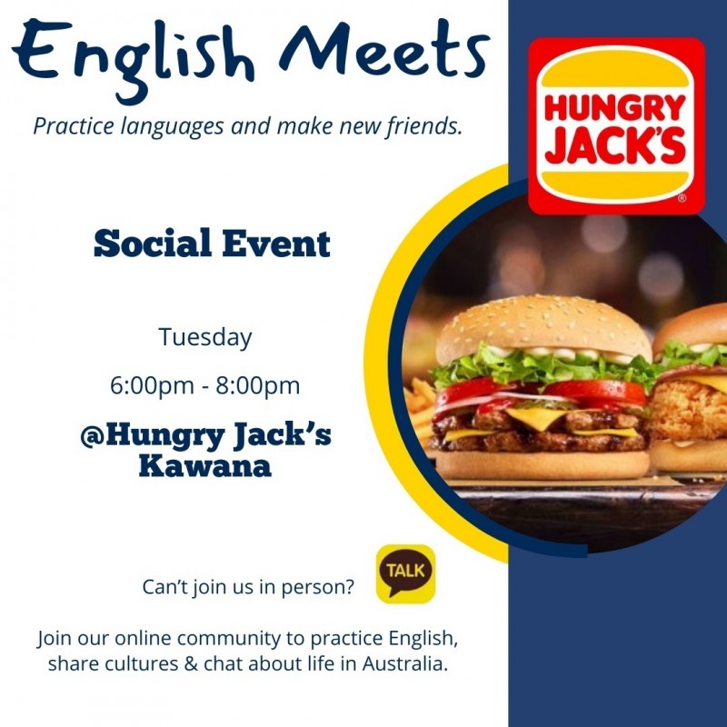 화요일 6시 - 8시에 Kawana Hungry Jack's로 오세요~ !!